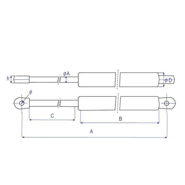 Compas à gaz 150KP course 300mm, tige 14 1500N
